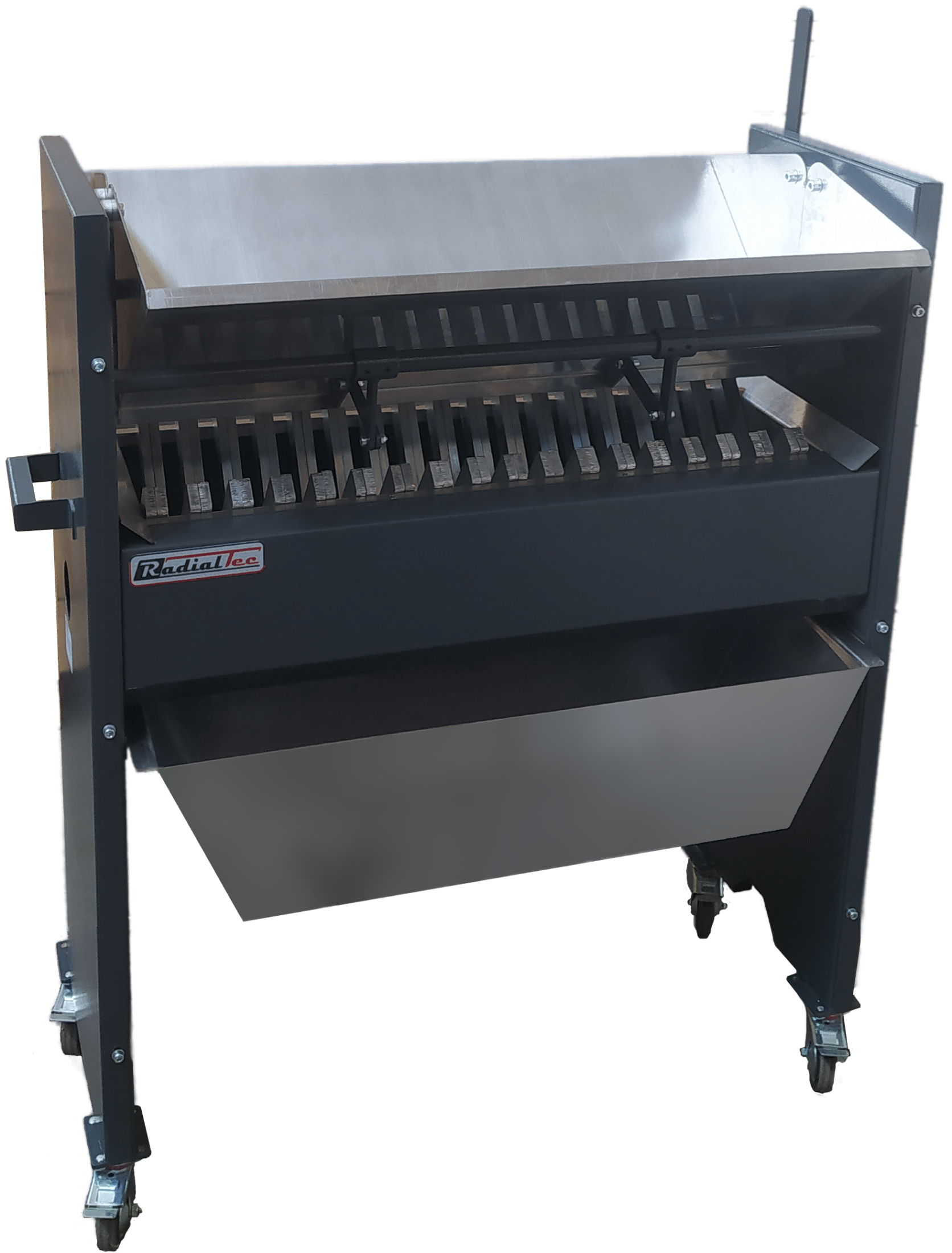 RT-MAg-001/L має живильний бункер із закритим вихідним отвором, що дозволяє рівномірно розподілити гранульований матеріал об'ємом до 30 л по всій ширині бункера. Дільник забезпечує гнучкість у розмірах ширини канавки. Ширина канавки регулюється від 10 мм до 90 мм.