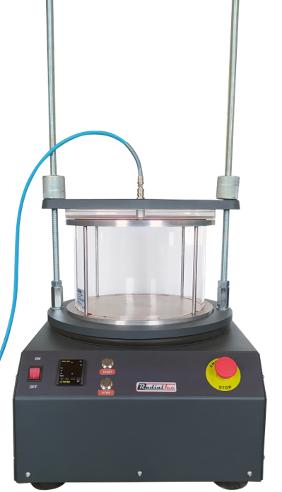 Конструкція RT-MAg-009/Mec дозволяє надавати рівномірне та ефективне струшування ситам Ø 200 мм та Ø 300 мм, а також вакуумним пікнометрам до Ø 340 мм.