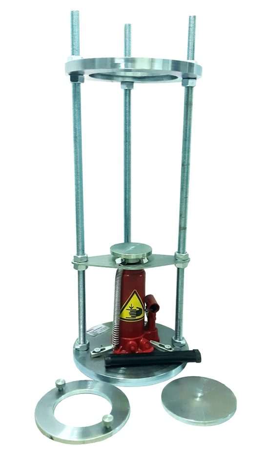 Екструдер використовується для видавлювання зразків із форм Marshall, Proctor та CBR. Адаптери можна легко встановити відповідно до діаметра форми: 100 мм, 150 мм, 4" і 6". RT-MG-007/М оснащений ручним гідравлічним домкратом і відкатною пружиною для зручності використання. Постачається в комплекті з адаптерами з отвором d 109,7 мм (для форм діаметром 100 мм і 4 дюйми) і отвором d 162,2 мм (для форм діаметром 150 мм і 6 дюймів).